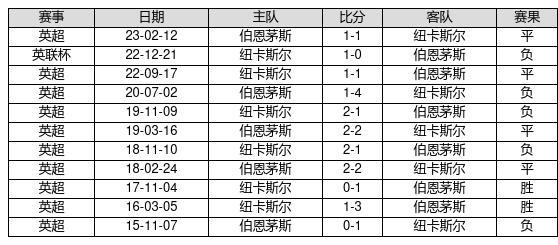 伯恩茅斯 VS 纽卡斯尔两队近10年的交战次数为11场,伯恩茅斯2胜4平5负,赢球概率为18.2%,平局概率为36.4%,输球概率为45.5%。