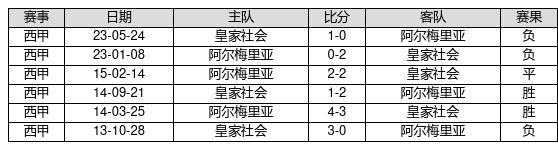 阿尔梅里亚 VS 皇家社会两队近10年的交战次数为6场,阿尔梅里亚2胜1平3负,赢球概率为33.3%,平局概率为16.7%,输球概率为50%。