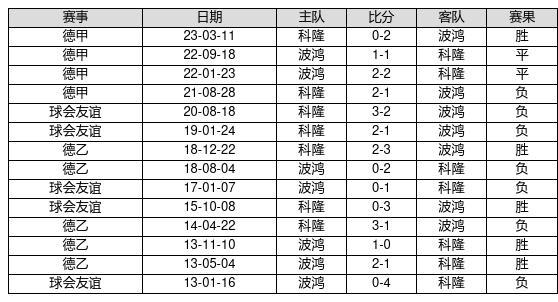 波鸿 VS 科隆两队近10年的交战次数为14场,波鸿5胜2平7负,赢球概率为35.7%,平局概率为14.3%,输球概率为50%。