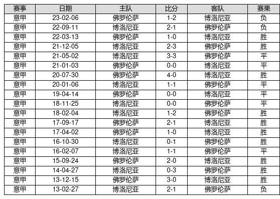 佛罗伦萨 VS 博洛尼亚两队近10年的交战次数为19场,佛罗伦萨10胜6平3负,赢球概率为52.6%,平局概率为31.6%,输球概率为15.8%。