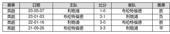 利物浦 VS 布伦特福德两队近10年的交战次数为4场,利物浦2胜1平1负,赢球概率为50%,平局概率为25%,输球概率为25%。