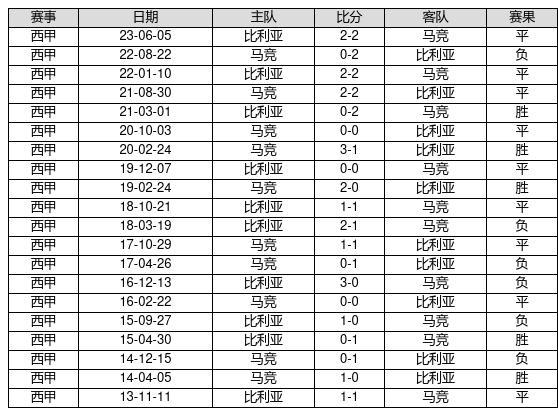 马竞 VS 比利亚两队近10年的交战次数为20场,马竞5胜9平6负,赢球概率为25%,平局概率为45%,输球概率为30%。