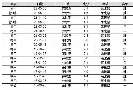 莱比锡 VS 弗赖堡两队近10年的交战次数为18场,莱比锡9胜5平4负,赢球概率为50%,平局概率为27.8%,输球概率为22.2%。