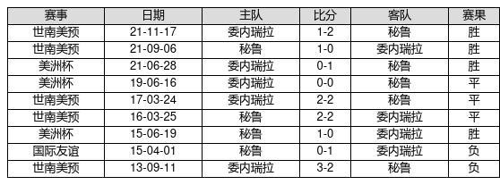 秘鲁 VS 委内瑞拉两队近10年的交战次数为9场,秘鲁4胜3平2负,赢球概率为44.4%,平局概率为33.3%,输球概率为22.2%。