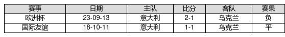 乌克兰 VS 意大利两队近10年的交战次数为2场,乌克兰0胜1平1负,赢球概率为0%,平局概率为50%,输球概率为50%。
