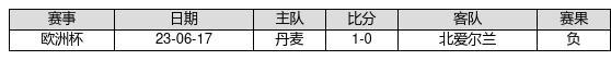北爱尔兰 VS 丹麦两队近10年的交战次数为1场,北爱尔兰0胜0平1负,赢球概率为0%,平局概率为0%,输球概率为100%。