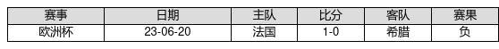 希腊 VS 法国两队近10年的交战次数为1场,希腊0胜0平1负,赢球概率为0%,平局概率为0%,输球概率为100%。