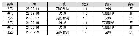 波城 VS 瓦朗谢讷两队近10年的交战次数为6场,波城2胜2平2负,赢球概率为33.3%,平局概率为33.3%,输球概率为33.3%。