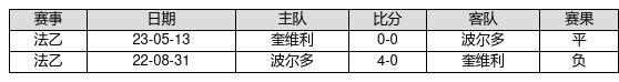 奎维利 VS 波尔多两队近10年的交战次数为2场,奎维利0胜1平1负,赢球概率为0%,平局概率为50%,输球概率为50%。