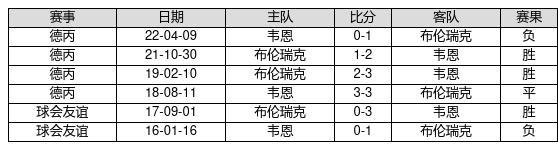 韦恩 VS 布伦瑞克两队近10年的交战次数为6场,韦恩3胜1平2负,赢球概率为50%,平局概率为16.7%,输球概率为33.3%。