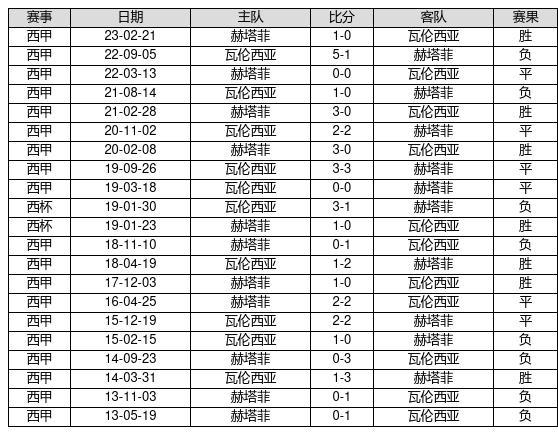 赫塔菲 VS 瓦伦西亚两队近10年的交战次数为21场,赫塔菲7胜6平8负,赢球概率为33.3%,平局概率为28.6%,输球概率为38.1%。