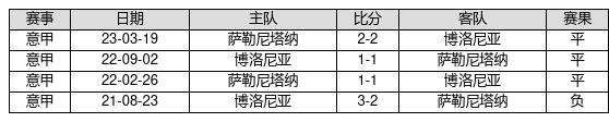 萨勒尼塔纳 VS 博洛尼亚两队近10年的交战次数为4场,萨勒尼塔纳0胜3平1负,赢球概率为0%,平局概率为75%,输球概率为25%。