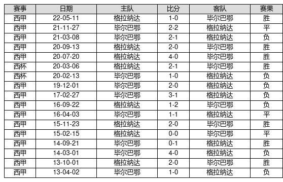 格拉纳达 VS 毕尔巴鄂两队近10年的交战次数为17场,格拉纳达7胜3平7负,赢球概率为41.2%,平局概率为17.6%,输球概率为41.2%。