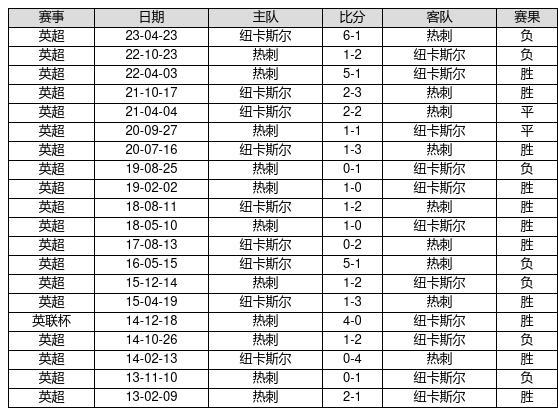 热刺 VS 纽卡斯尔两队近10年的交战次数为20场,热刺11胜2平7负,赢球概率为55%,平局概率为10%,输球概率为35%。