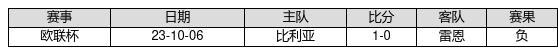 雷恩 VS 比利亚两队近10年的交战次数为1场,雷恩0胜0平1负,赢球概率为0%,平局概率为0%,输球概率为100%。