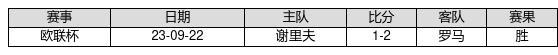 罗马 VS 谢里夫两队近10年的交战次数为1场,罗马1胜0平0负,赢球概率为100%,平局概率为0%,输球概率为0%。