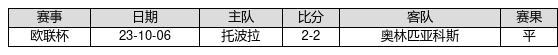 奥林匹亚科斯 VS 托波拉两队近10年的交战次数为1场,奥林匹亚科斯0胜1平0负,赢球概率为0%,平局概率为100%,输球概率为0%。