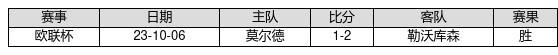 勒沃库森 VS 莫尔德两队近10年的交战次数为1场,勒沃库森1胜0平0负,赢球概率为100%,平局概率为0%,输球概率为0%。