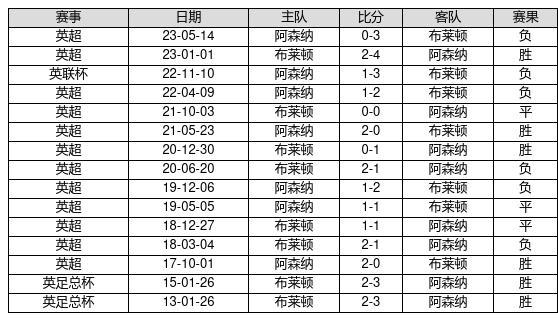阿森纳 VS 布莱顿两队近10年的交战次数为15场,阿森纳6胜3平6负,赢球概率为40%,平局概率为20%,输球概率为40%。