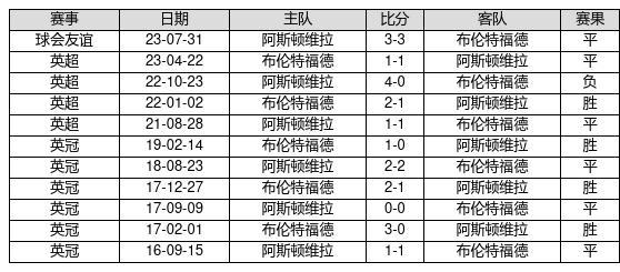 布伦特福德 VS 阿斯顿维拉两队近10年的交战次数为11场,布伦特福德4胜6平1负,赢球概率为36.4%,平局概率为54.5%,输球概率为9.1%。