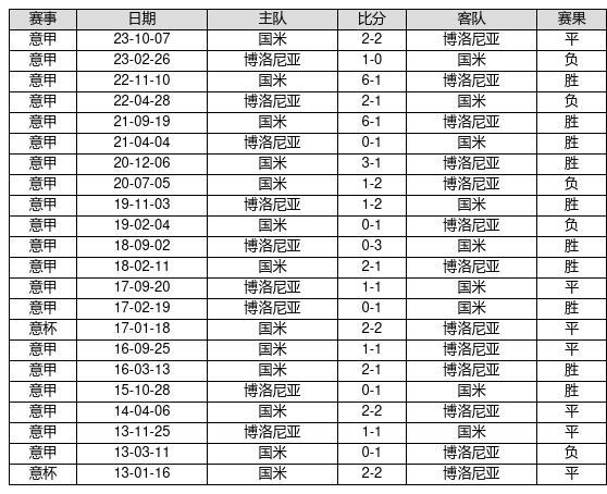 国米 VS 博洛尼亚两队近10年的交战次数为22场,国米10胜7平5负,赢球概率为45.5%,平局概率为31.8%,输球概率为22.7%。