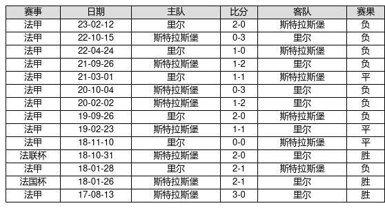 斯特拉斯堡 VS 里尔两队近10年的交战次数为14场,斯特拉斯堡3胜3平8负,赢球概率为21.4%,平局概率为21.4%,输球概率为57.1%。