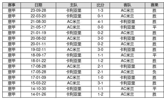 AC米兰 VS 卡利亚里两队近10年的交战次数为16场,AC米兰12胜3平1负,赢球概率为75%,平局概率为18.8%,输球概率为6.3%。