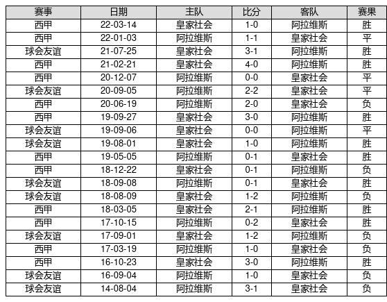 皇家社会 VS 阿拉维斯两队近10年的交战次数为21场,皇家社会10胜4平7负,赢球概率为47.6%,平局概率为19%,输球概率为33.3%。