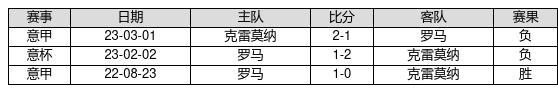 罗马 VS 克雷莫纳两队近10年的交战次数为3场,罗马1胜0平2负,赢球概率为33.3%,平局概率为0%,输球概率为66.7%。