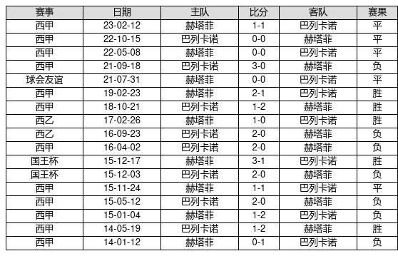 赫塔菲 VS 巴列卡诺两队近10年的交战次数为17场,赫塔菲5胜5平7负,赢球概率为29.4%,平局概率为29.4%,输球概率为41.2%。