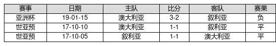 叙利亚 VS 澳大利亚两队近10年的交战次数为3场,叙利亚0胜2平1负,赢球概率为0%,平局概率为66.7%,输球概率为33.3%。