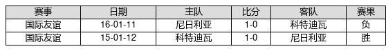 科特迪瓦 VS 尼日利亚两队近10年的交战次数为2场,科特迪瓦1胜0平1负,赢球概率为50%,平局概率为0%,输球概率为50%。