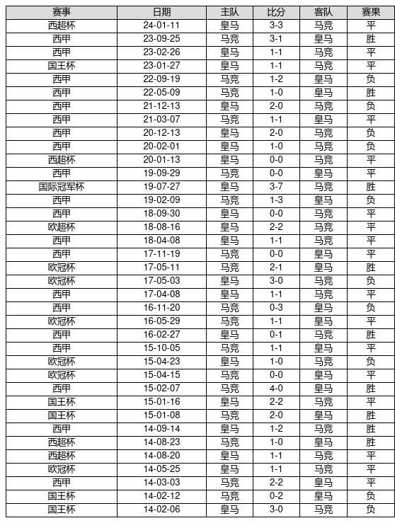马竞 VS 皇马两队近10年的交战次数为37场,马竞9胜18平10负,赢球概率为24.3%,平局概率为48.6%,输球概率为27%。
