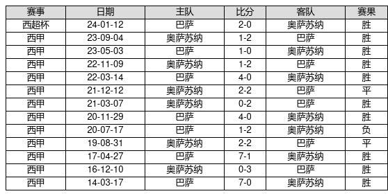 巴萨 VS 奥萨苏纳两队近10年的交战次数为13场,巴萨10胜2平1负,赢球概率为76.9%,平局概率为15.4%,输球概率为7.7%。