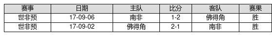 佛得角 VS 南非两队近10年的交战次数为2场,佛得角2胜0平0负,赢球概率为100%,平局概率为0%,输球概率为0%。