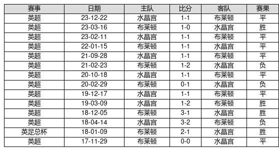 布莱顿 VS 水晶宫两队近10年的交战次数为14场,布莱顿4胜7平3负,赢球概率为28.6%,平局概率为50%,输球概率为21.4%。