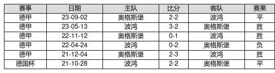 波鸿 VS 奥格斯堡两队近10年的交战次数为6场,波鸿3胜2平1负,赢球概率为50%,平局概率为33.3%,输球概率为16.7%。
