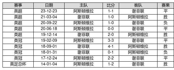谢菲联 VS 阿斯顿维拉两队近10年的交战次数为10场,谢菲联4胜4平2负,赢球概率为40%,平局概率为40%,输球概率为20%。