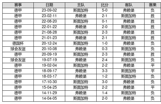 弗赖堡 VS 斯图加特两队近10年的交战次数为17场,弗赖堡6胜3平8负,赢球概率为35.3%,平局概率为17.6%,输球概率为47.1%。