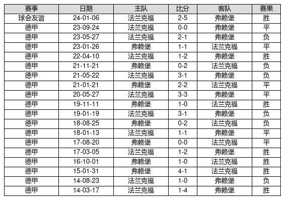 弗赖堡 VS 法兰克福两队近10年的交战次数为19场,弗赖堡7胜6平6负,赢球概率为36.8%,平局概率为31.6%,输球概率为31.6%。