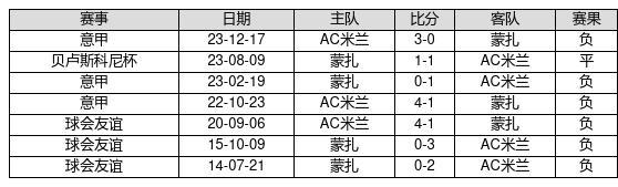 蒙扎 VS AC米兰两队近10年的交战次数为7场,蒙扎0胜1平6负,赢球概率为0%,平局概率为14.3%,输球概率为85.7%。