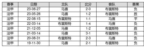 布雷斯特 VS 马赛两队近10年的交战次数为8场,布雷斯特2胜1平5负,赢球概率为25%,平局概率为12.5%,输球概率为62.5%。