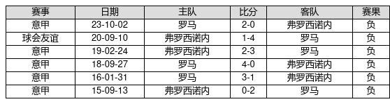 弗罗西诺内 VS 罗马两队近10年的交战次数为6场,弗罗西诺内0胜0平6负,赢球概率为0%,平局概率为0%,输球概率为100%。