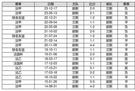 兰斯 VS 朗斯两队近10年的交战次数为18场,兰斯3胜7平8负,赢球概率为16.7%,平局概率为38.9%,输球概率为44.4%。