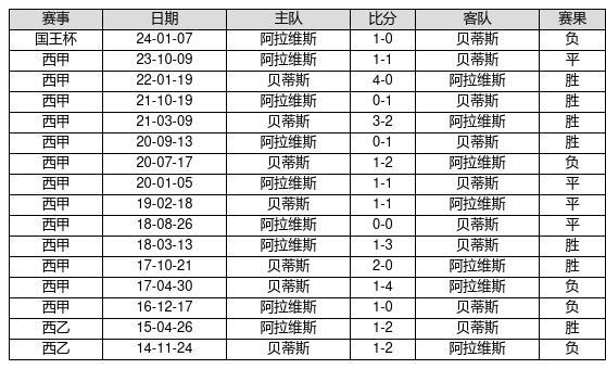 贝蒂斯 VS 阿拉维斯两队近10年的交战次数为16场,贝蒂斯7胜4平5负,赢球概率为43.8%,平局概率为25%,输球概率为31.3%。