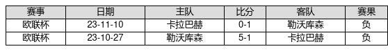 卡拉巴赫 VS 勒沃库森两队近10年的交战次数为2场,卡拉巴赫0胜0平2负,赢球概率为0%,平局概率为0%,输球概率为100%。