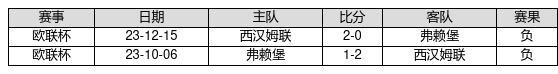 弗赖堡 VS 西汉姆联两队近10年的交战次数为2场,弗赖堡0胜0平2负,赢球概率为0%,平局概率为0%,输球概率为100%。