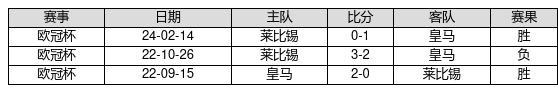 皇马 VS 莱比锡两队近10年的交战次数为3场,皇马2胜0平1负,赢球概率为66.7%,平局概率为0%,输球概率为33.3%。