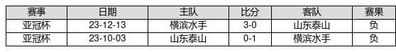 山东泰山 VS 横滨水手两队近10年的交战次数为2场,山东泰山0胜0平2负,赢球概率为0%,平局概率为0%,输球概率为100%。