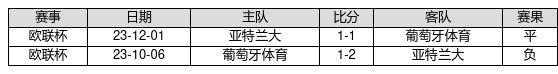 葡萄牙体育 VS 亚特兰大两队近10年的交战次数为2场,葡萄牙体育0胜1平1负,赢球概率为0%,平局概率为50%,输球概率为50%。